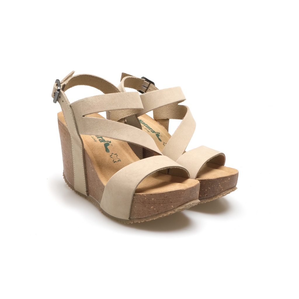 Bio Natura Sandali Con Zeppa Donna – Nabuk sabbia – 29A2008