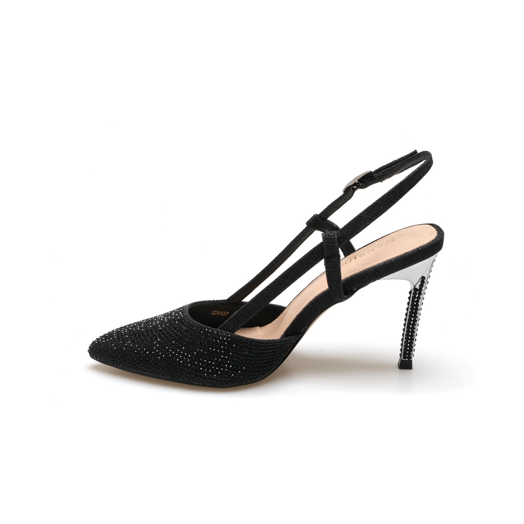 Dettagli: Tessuto glitterato allover – Tacco con strass applicati – Strass applicati allover