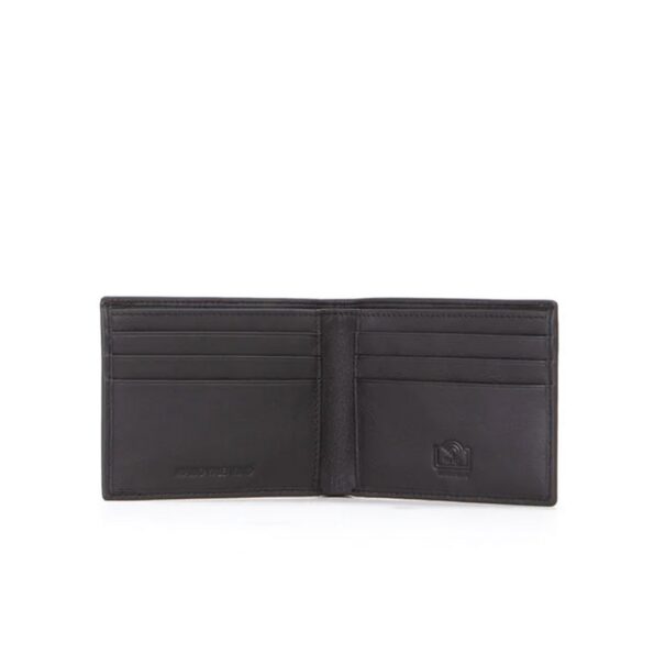 Dettagli: Logo frontale tono su tono – Larghezza: 11 cm – Altezza: 9 cm – Profondità: 1 cm – Diversi scomparti per banconote, carte e monete